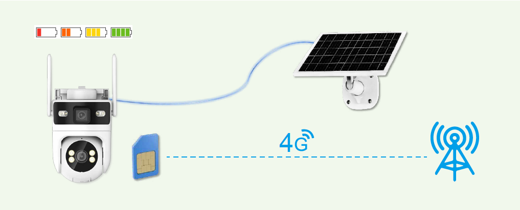 ZD6 -AV PT camera make outdoor/indoor security more simple. With 4G function, it can be used in the scenarios that are not suitable for laying wired network or have no Internet access, such as farms, mountainous areas, fishpond, construction sites, etc. For such scenarios, AOV technology and solar panel enable 24/7 non-stop recording with energy efficiency and eco-friendliness. Meanwhile, human shape smart detection provides enhanced protection.
