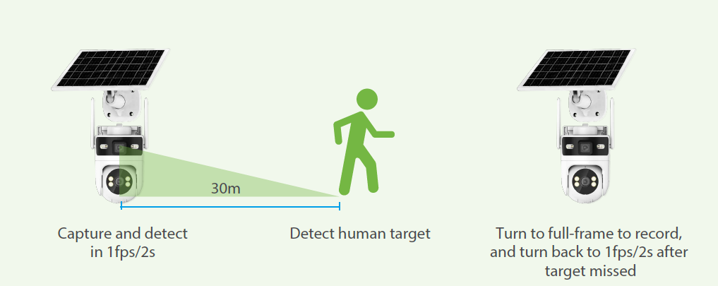 AOV technology has realizes all-day recording and alarm-triggered recording, long standby time, and a much greater detection distance.