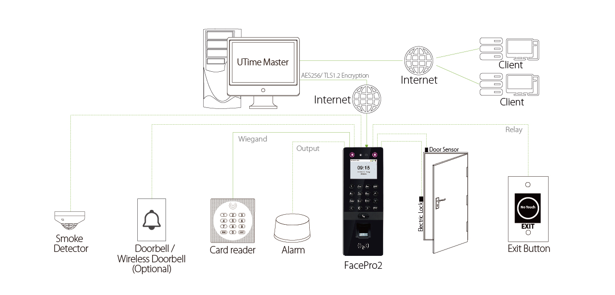 ♦ Simple access control functions (Electric Lock; Door Sensor; Exit Button)
