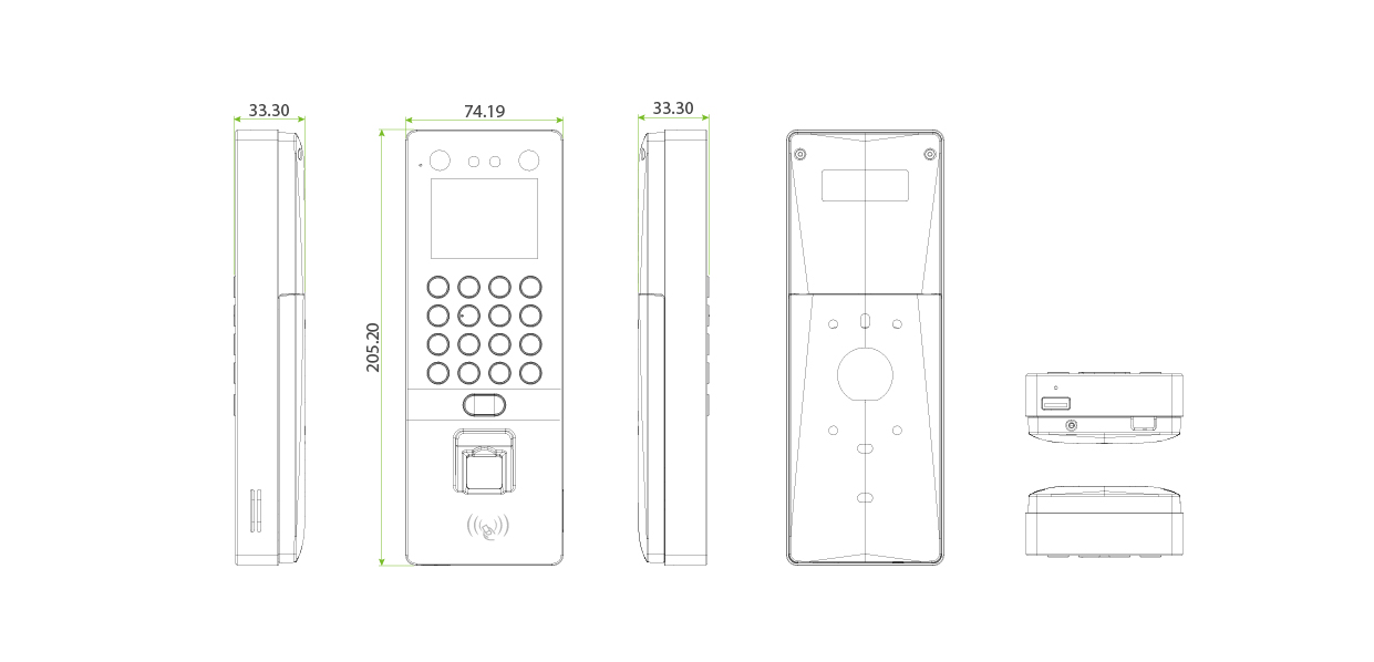 ADMS, DST, Photo Capture, Event Photo Capture, Up to 14-digit User ID, Access Levels, Groups, Holidays, Record Query, Schedule Bell, Tamper Switch Alarm, Automatic Status Switch, Multiple AuthenticationMethods, SIP Client (Version 2.0), ONVIF (Compatible with Profile S, Profile T, Profile G, Profile C, Profile Q & Profile A), AC Push and TA Push Protocol Switch, HTTPs / SSH Backend Access, T9 Keyboard (Input) |
