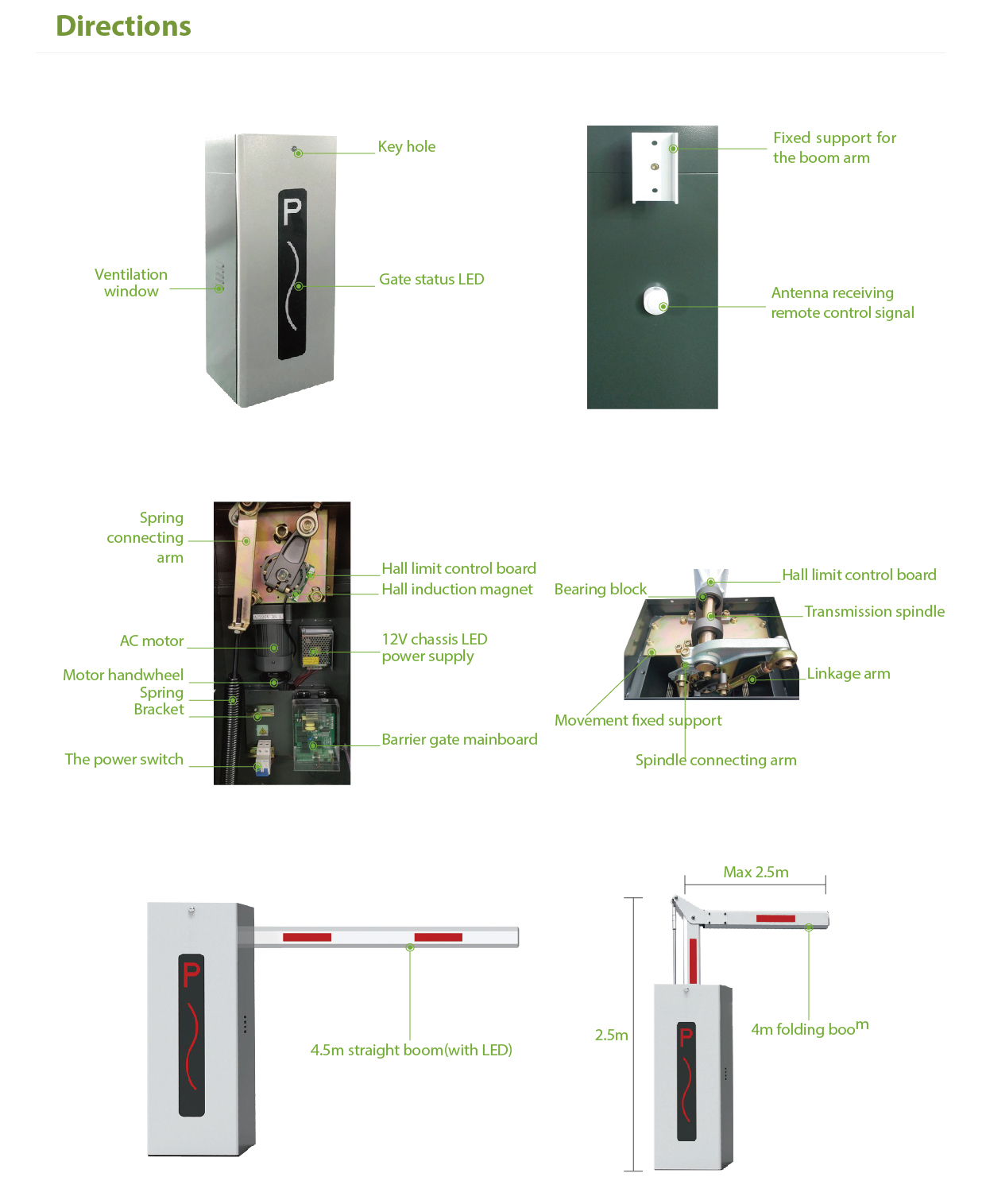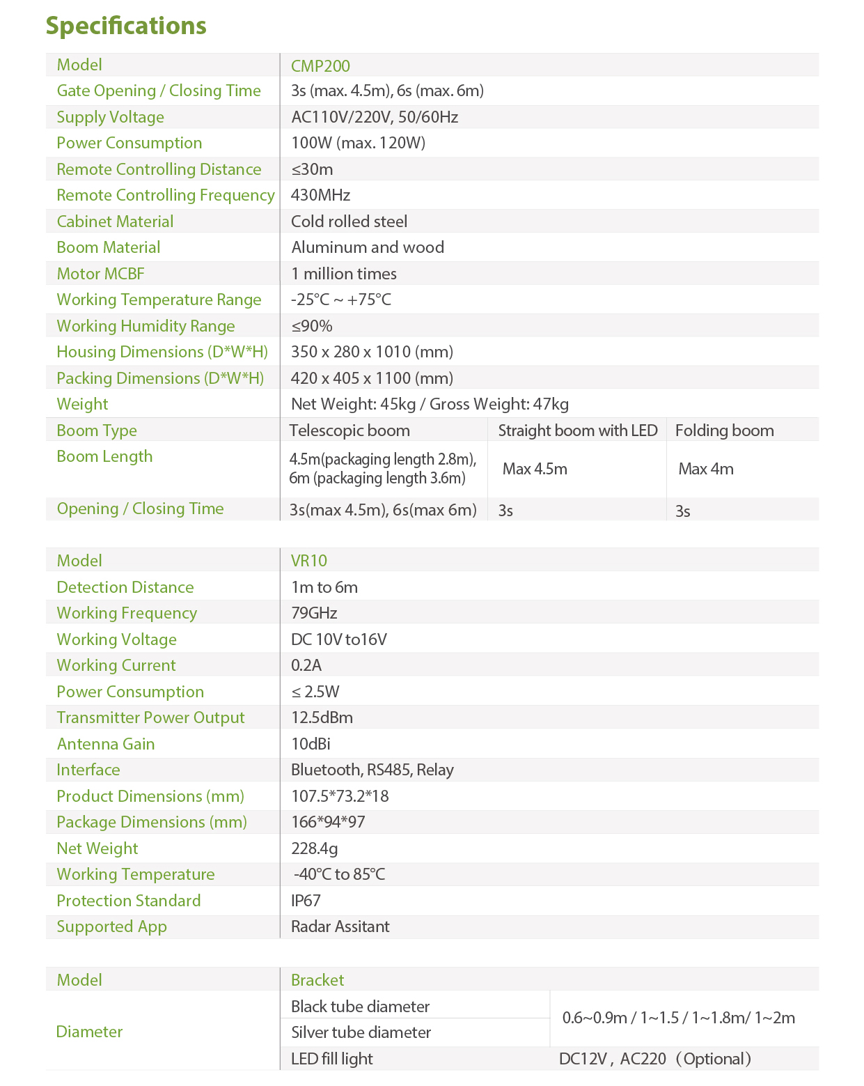 CMP200 series offers brand-new automatic barrier gates equipped with telescopic boom arm that allows direction exchanging according to site application and a silvery housing with built-in LED indicating the state of the parking barrier, providing humanized user experience.
